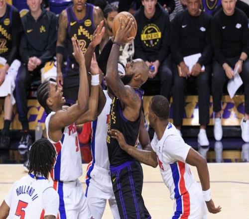 第二节,活塞开局送出8-0的进攻波,随后东契奇命中3分+中投为球队止血,活塞罚球拿3分,詹姆斯3分止血,杜伦爆扣得手,拉拉维亚抛投打进2分,康宁汉姆溜底线上篮得手,东契奇跳投拿到2分,邓罗打进2+1,范德彪内线成功吃饼,东契奇罚球拿2分,格林跟进攻筐得手,回来范德彪回敬3分,奥萨尔双手爆扣,海斯中路顺下吃饼暴扣,杜伦进攻犯规升级为一级恶意,拉拉维亚罚球再取2分,萨瑟3分命中,詹姆斯造3分犯规三罚一中,康宁汉姆飞身上篮打进,范德彪3分再中,尼克史密斯跳投打进,里德打进2+1,康宁汉姆反击劈扣,詹姆斯3分,东契奇连续罚球,上半场打完,活塞70-65领先湖人。康宁汉姆半场20分,詹姆斯15分4助攻,东契奇22分!